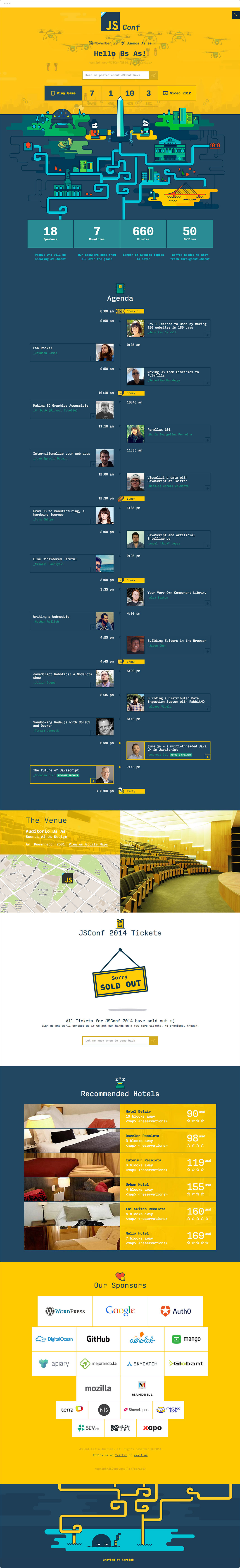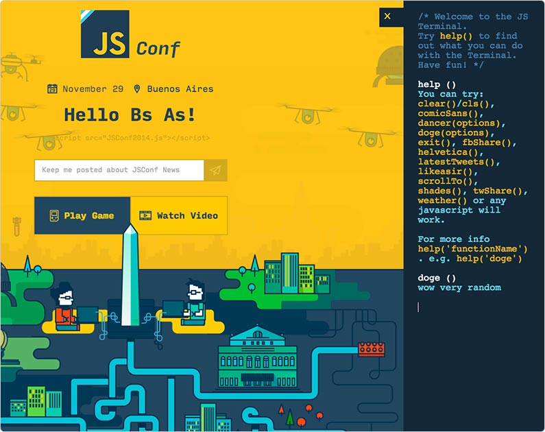 The JSConf has been, for a long time, an event made by and for people who love coding and development; it is an event for geeks in the "I freaking love JS" sense of the word. In 2014, the largest JavaScript conference in Latin America took place in the city of Buenos Aires, so this deserved to be accurately reflected.