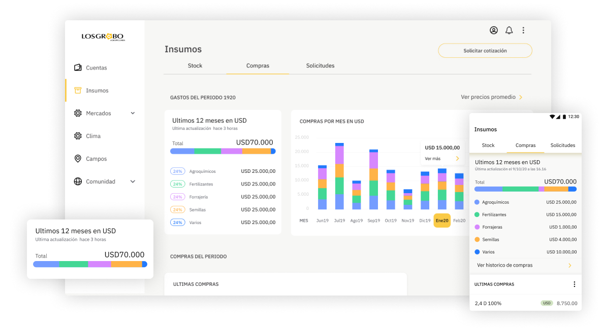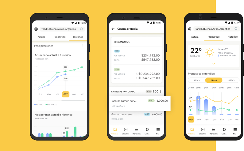 The platform provides producers with fundamental information for their decision making in the agricultural business, with real-time data on weather, prices and products. And is also where all transactional information with the company is visible.